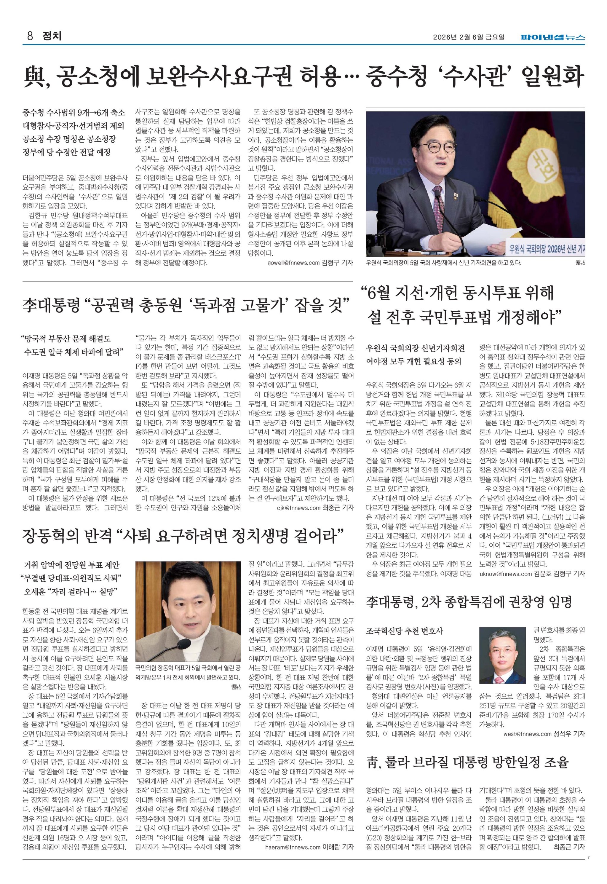 토요일은 인터넷판 신문만 발행되며 일요일은 신문이 발행되지 않습니다.